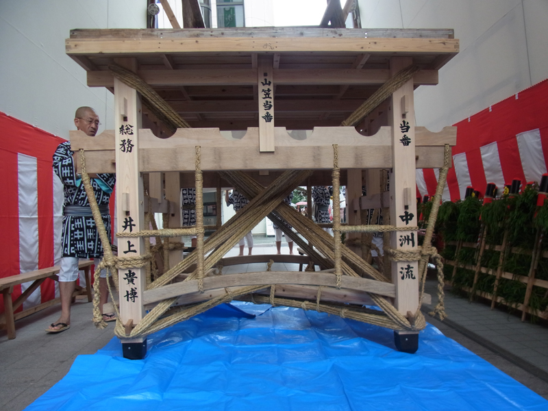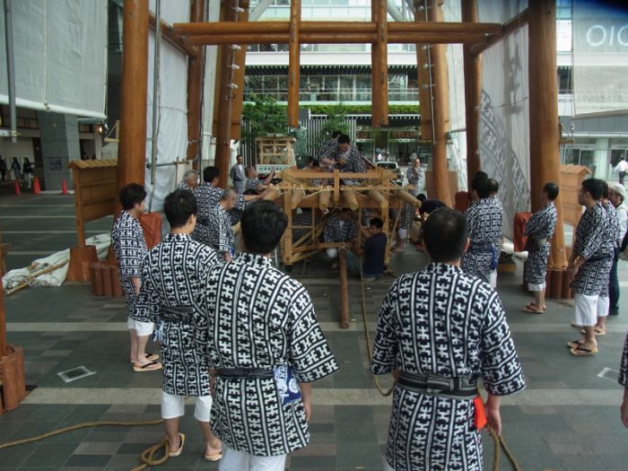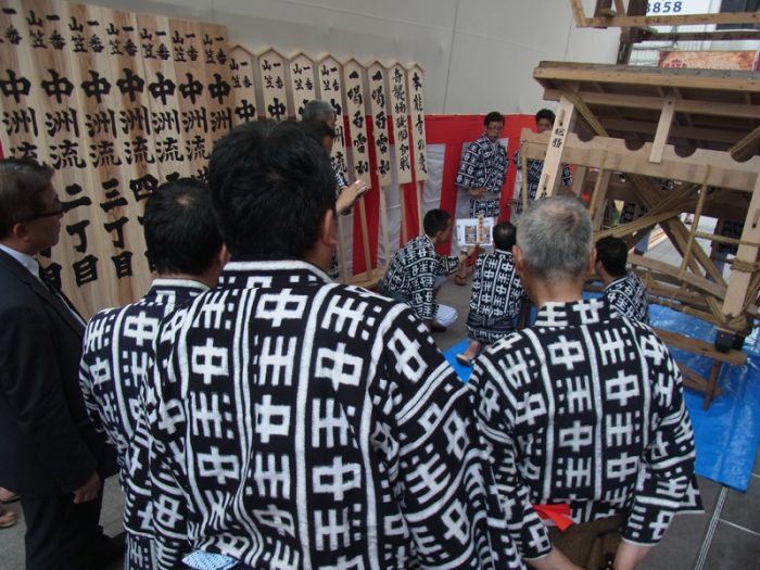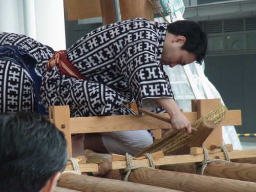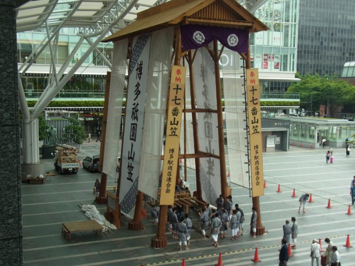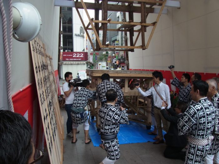 昨日23日(金)、博多駅の飾り山では小屋入り神事を行われ、午後1時過ぎから棒締めが行われました。