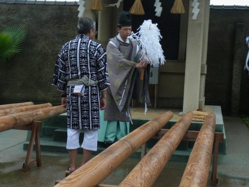 最後に山脇総務が玉串奉奠を行い、小屋入りの神事が無事終了しました。
