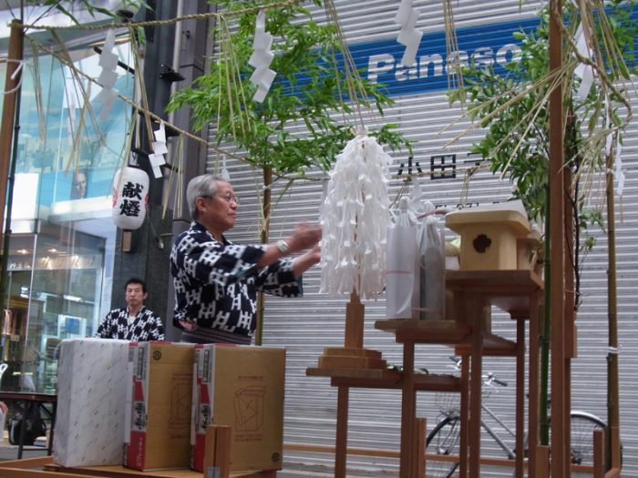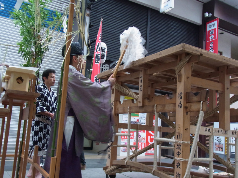 上川端商店街の北側になる川端中央街は、本日午前9時より小屋入りの神事を執り行いました。