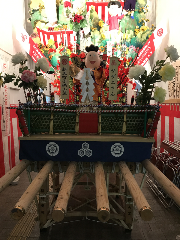 新天町ではアーケード入り口近くに据えてある子供山笠を飾り山のある場所まで移動していました。