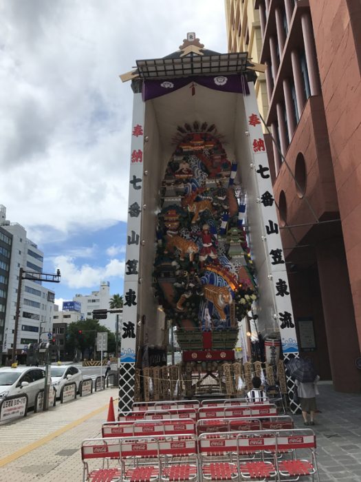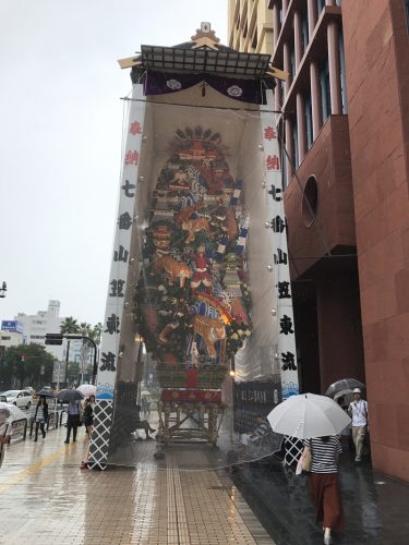 台風と山笠といえば、2014年に強い勢力を持った台風8号が上陸した際、危険回避のため飾り山を解いたという事があり、山笠期間に入ったばかりの博多では台風の情報に不安と緊張が走りましたが、山笠への大きな影響はなく博多の人たちは胸をなでおろしました。