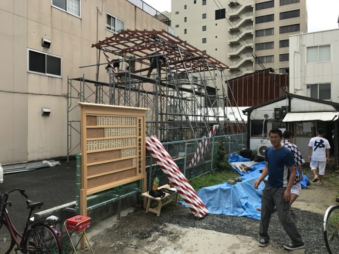 各町の詰所も台風対策。詰所のテントを畳んだり、芳名板に付けた芳名が飛ばないようになどと対策がとられました。