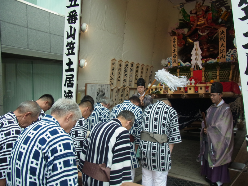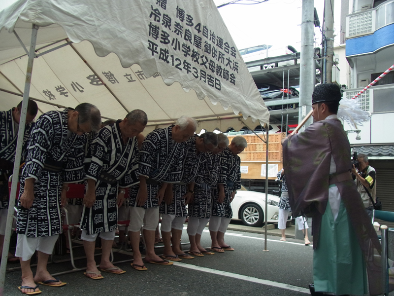 神職によって参加者が祓い浄められ、山笠に神が宿されます。