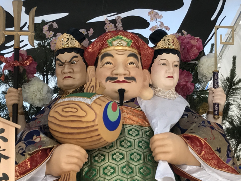 「大黒天」「毘沙門天」「弁財天」が一緒になった三面大黒天という珍しい大黒天が今年の標題。この三面大黒天は豊臣秀吉が懐に忍ばせていたという逸話があるそうです。