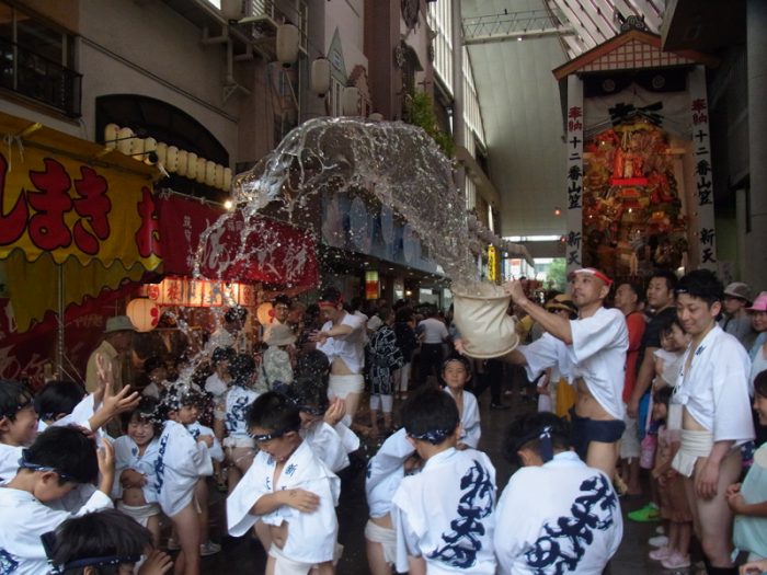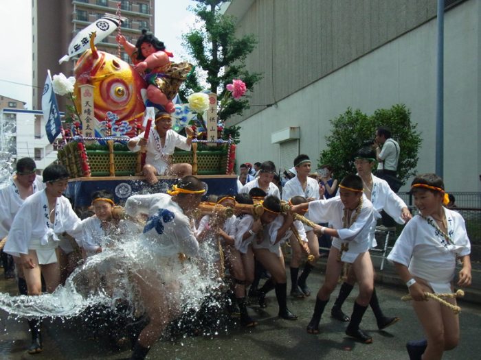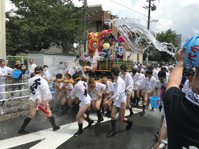 気温も高いため、時折大人が子供たちに水バケツから豪快に水を掛けます。水が掛けられるたびに子供たちは大騒ぎ。それを撮影する親御さんの姿がたくさん見られました。