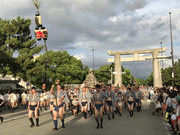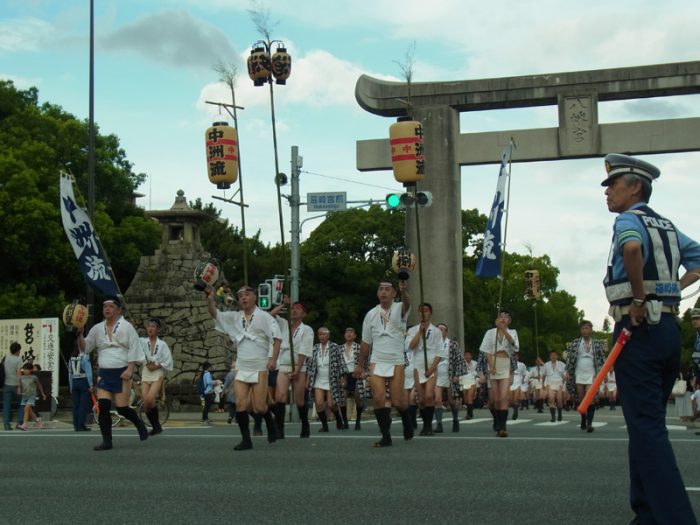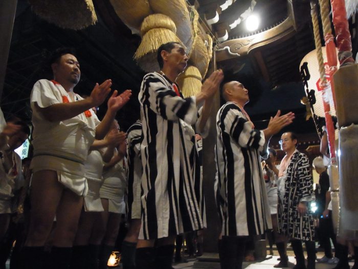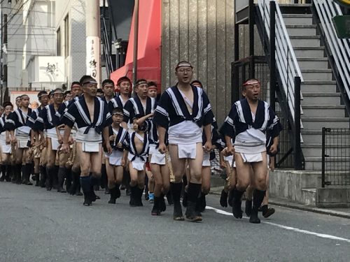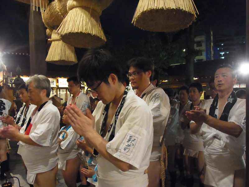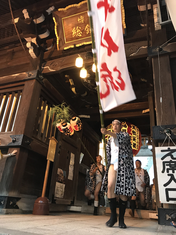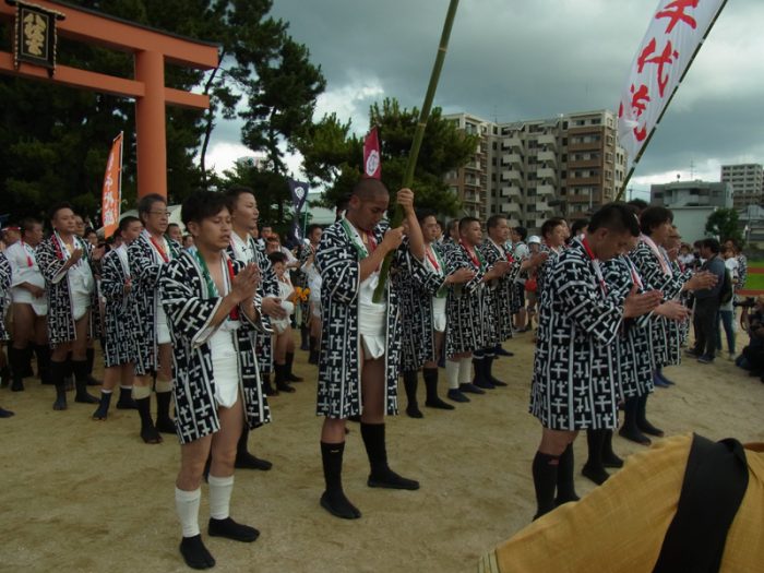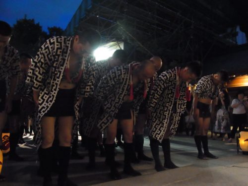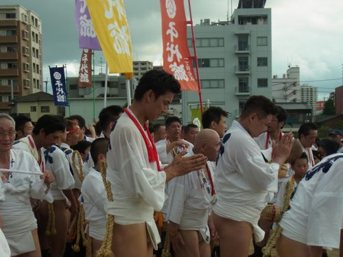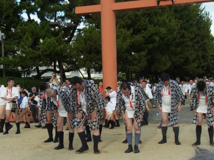 拝礼を終えた参加者は、再び走って自分の町に戻り、お汐井取りが無事行われたこと、そして「動」の山笠が始まったことを喜びました。