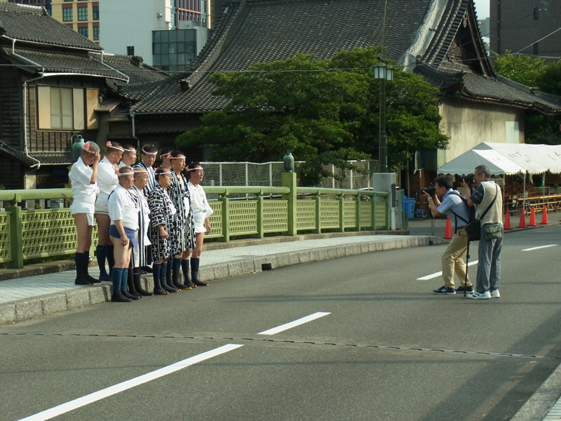 お汐井取りの出発地点となる千代3丁目交差点前にある石堂橋では、来年の公式ガイドブックに掲載する博多祇園山笠振興会の写真撮影が行われていました。