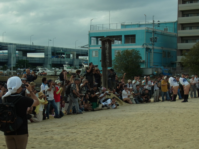 今日は日曜日だけあって、お汐井取りの見物客がとても多く、筥崎浜にはたくさんのカメラマン達がベストショットを撮ろうとスタンバイしていました。