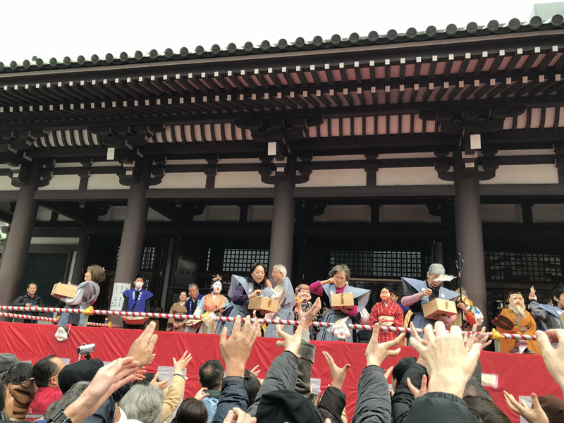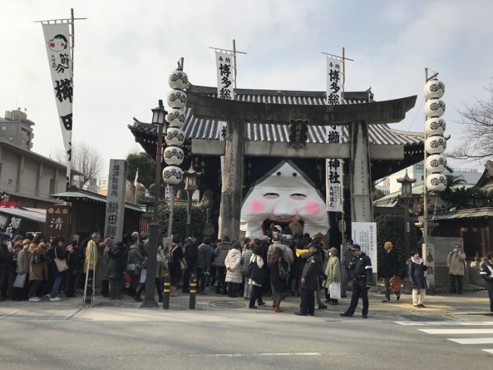 なお、本日2月3日は櫛田神社、東長寺で節分大祭が盛大に行われており、飛んでくる豆を拾いにたくさんの人たちが詰めかけ、博多の町は大変にぎやかな位置にととなっています。