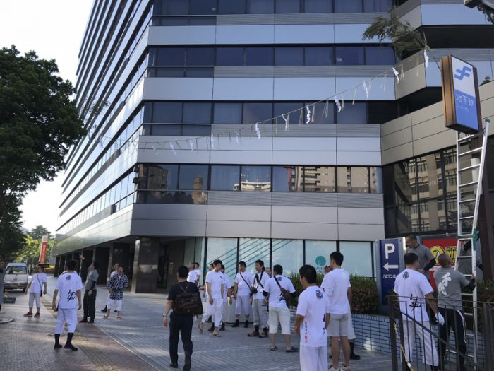 博多祇園山笠をモチーフに描いたアートの設置完了!福岡天神証券ビルです。 pic.twitter.com/G9oEGVc0pW