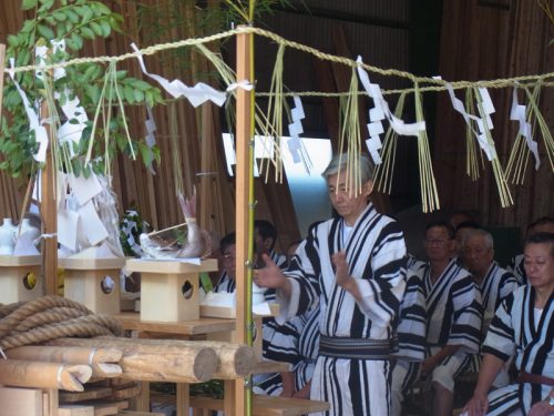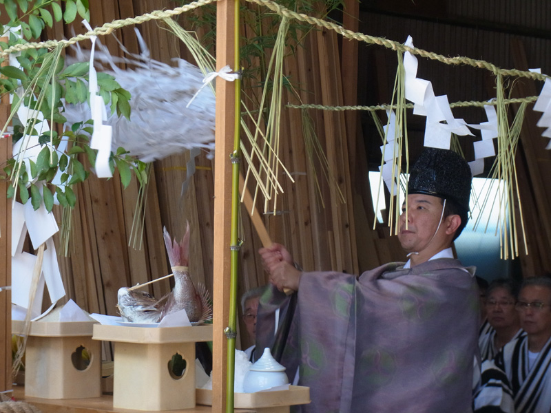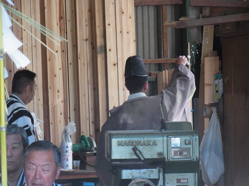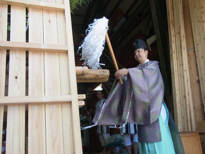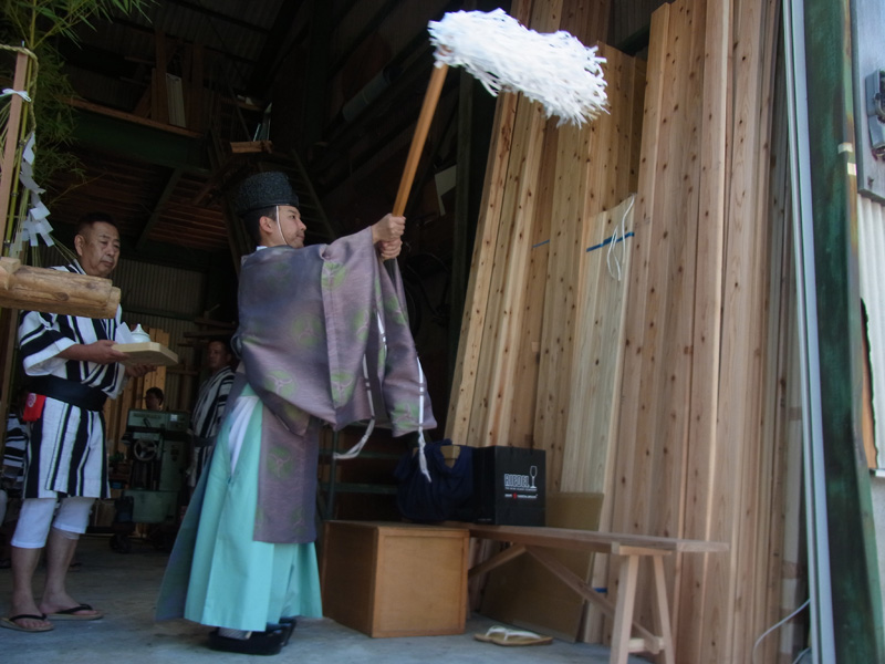 修祓、祝詞奏上が行われ、山小屋が建つ区域を祓い清める「浄め祓いの儀」が行われます。