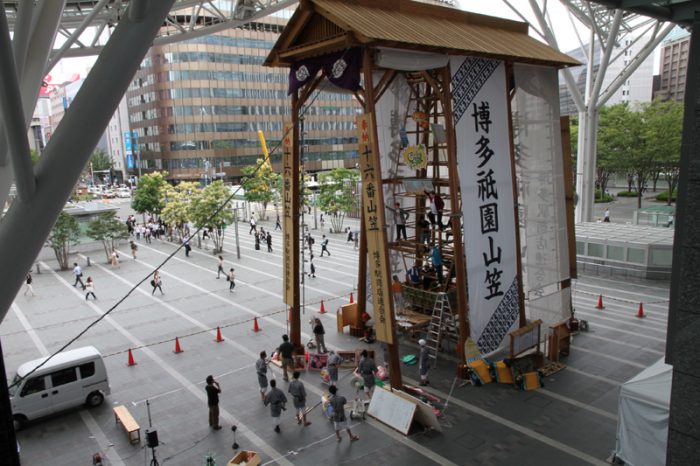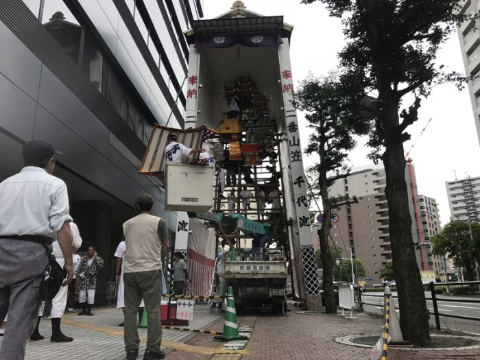 7月1日をあと5日後に控え、博多の町では飾り山の飾り付けラッシュが始まっています。