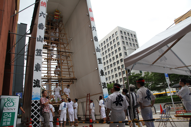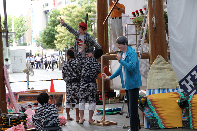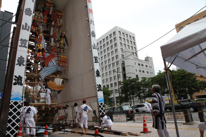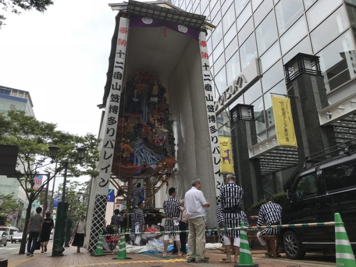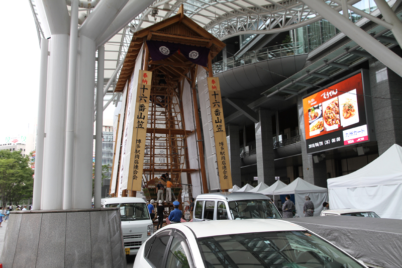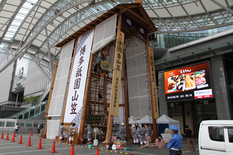 そして本日6月28日(木)からは九州の玄関口、博多駅の駅前広場に立つ博多駅商店連合会の飾り山の飾り付けがスタート。本日は見送り側の飾り付けが行われました。