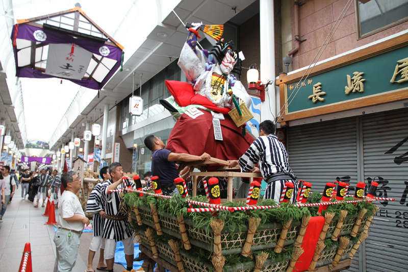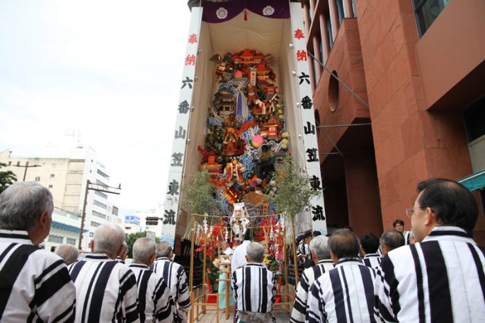 土居流は6月30日の午後より飾り付けを行いました。標題は「歌舞伎十八番 暫(かぶきじゅうはちばん しばらく)」。人形を見て「怖い!」と顔を曇らせる子供が何人もいたのにびっくり。それだけ迫力のある素晴らしい飾りが今年の土居流の飾りになります。