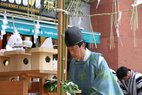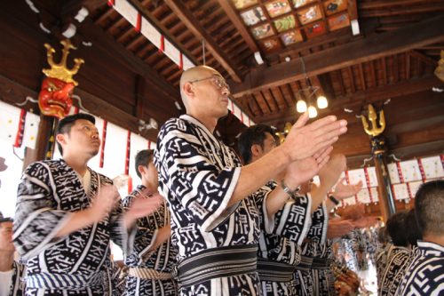 最後に総務・役員・山笠を奉納した企業・山大工・人形師らが玉串奉奠を行い、無事神事は終了しました。