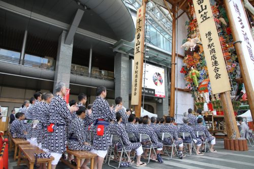 山笠開幕から一夜明けた本日7月2日(月)午前7時より、東流が御神入れの神事を執り行いました。