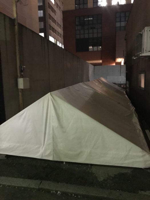 台風が福岡に向かってくる可能性が高くなった7月2日(月)の夜、すでに詰所のテントを畳んで安全対策を行っている町もありました。