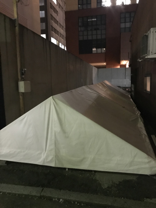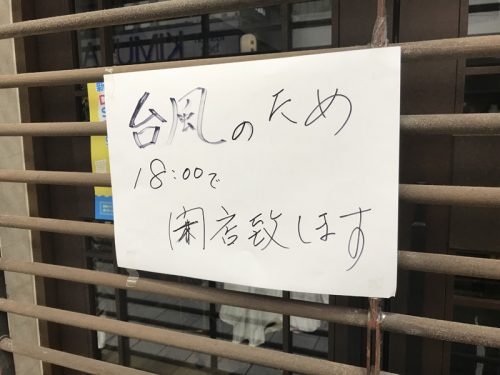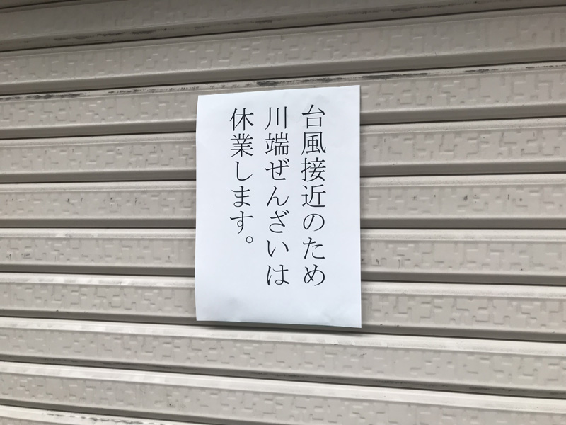 雨風の影響をあまり受けない上川端商店街ですが、万が一に備え土居流が山小屋の屋根を下ろして台風の通過を待っていました。