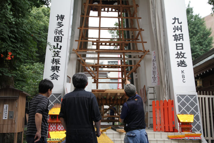明日、櫛田神社では見送り側の飾り付けが行われる予定です。