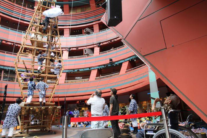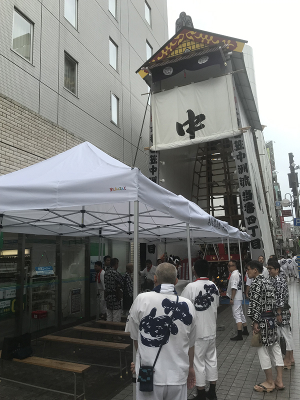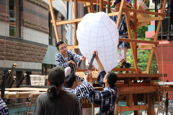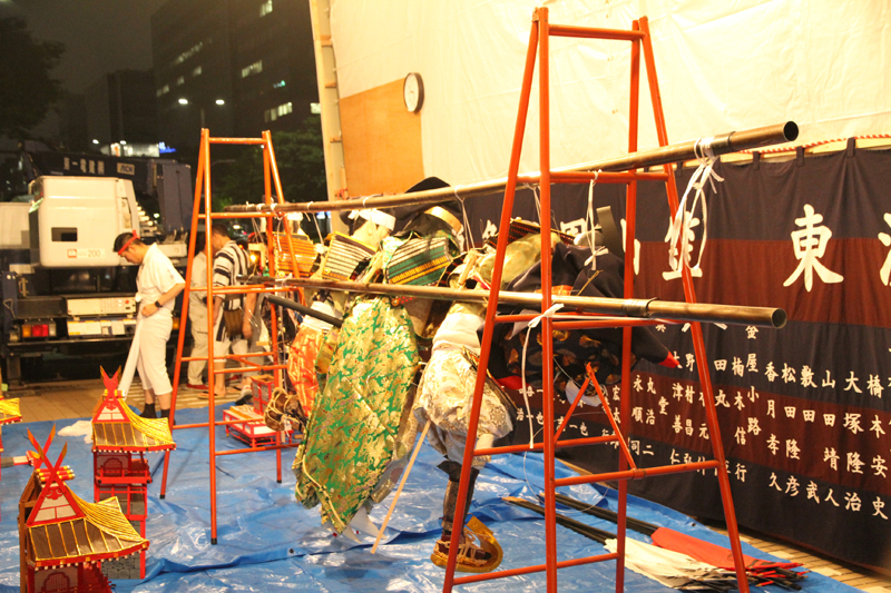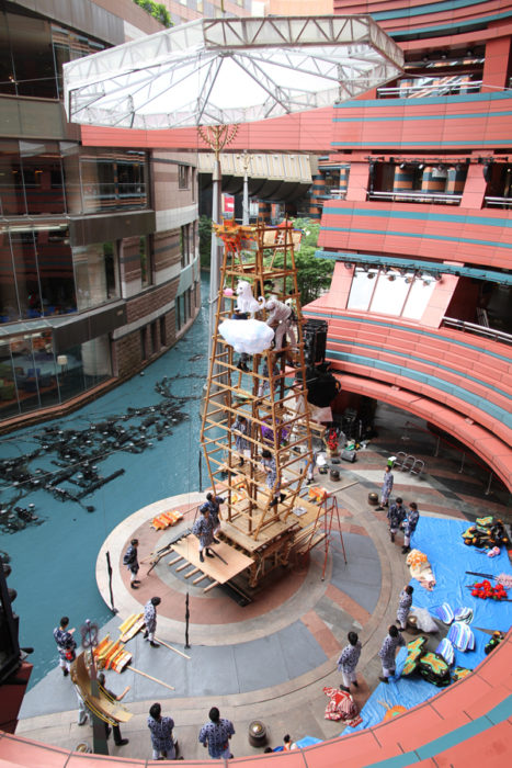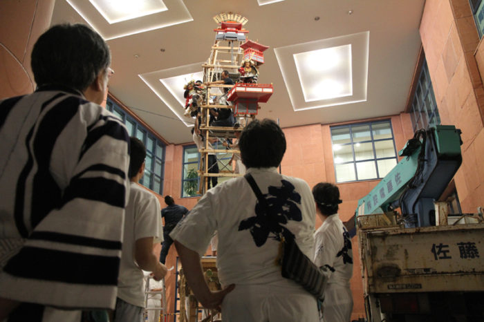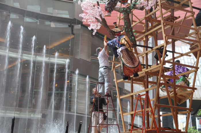 今年から飾り山の場所が三井ビジネスセンタービルのエントランス部分に移動する東流は、6月28日(金)の夜21時から飾り付けがスタート。