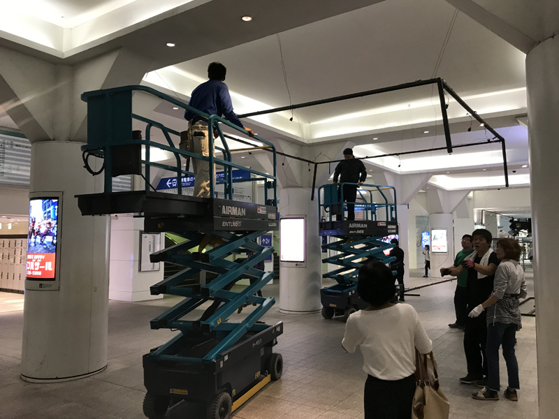開けて6月29日(日)。博多駅は飾り付け2日目となり、表の飾り付けが始まりました。