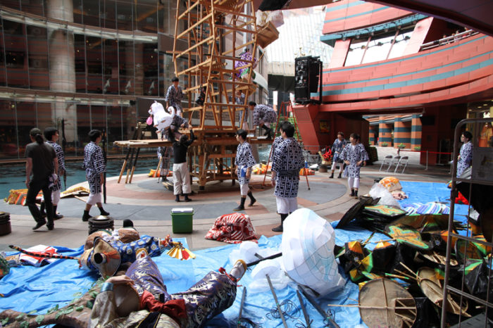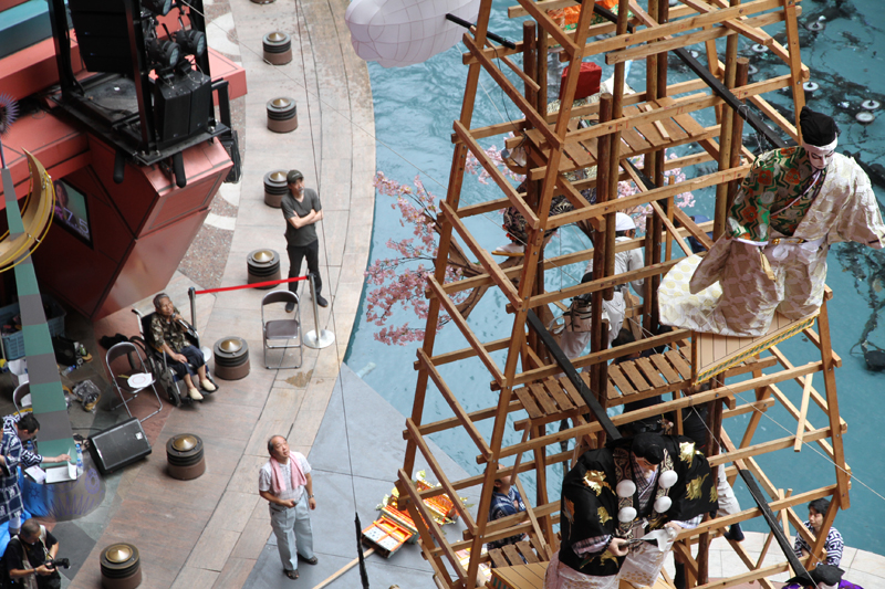 十六番山笠 キャナルシティ博多は本日29日(土)から飾り付けがスタート。朝8時から飾りが搬入され、飾り付けが始まりました。