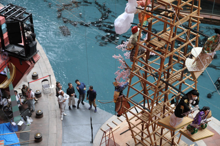 飾り付け作業は深夜まで続き、28日分の作業は大きな人形の据え付けまで終了。29日に細かい飾り付けを行い、7月1日の一般公開を待つことになります。