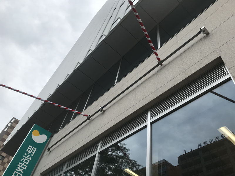 大博通り沿いに山小屋が建つ西流は、火曜日から建設が始まり、本日の段階ではすでに完成していました。山小屋横の住友林業さんの壁には、今後もこの場所に山小屋が建つ事も踏まえて、支柱を掛けるフックが取り付けられており、山笠と共にある町作りの一端を垣間見ることができます。