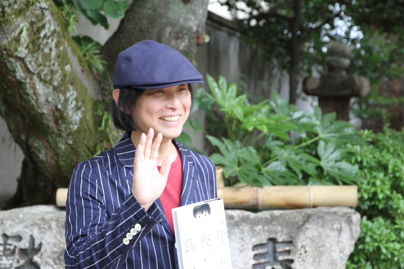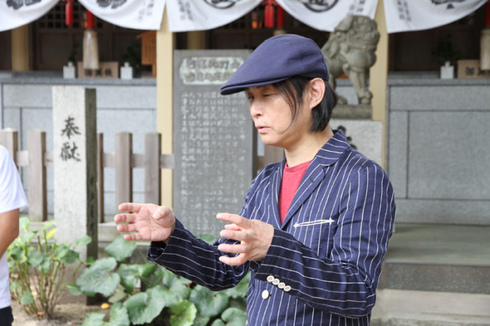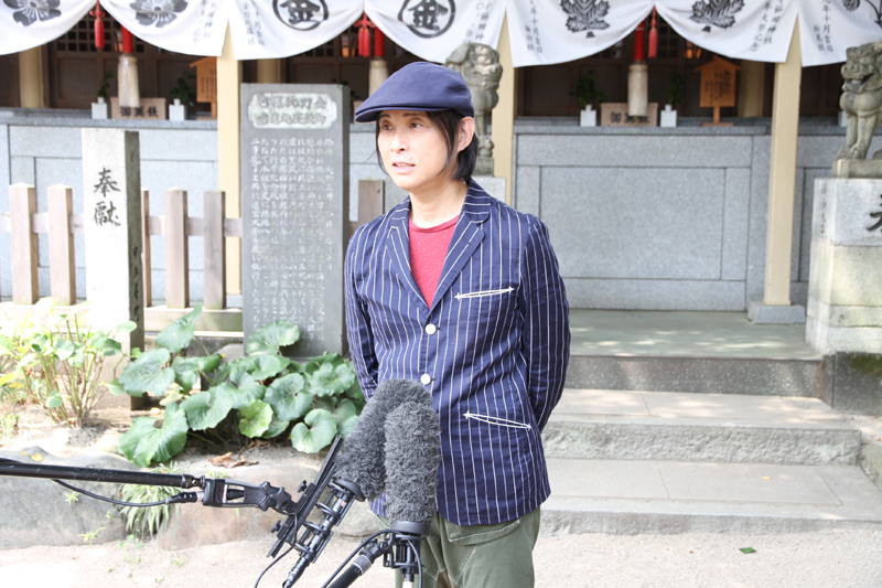 記念撮影後、櫛田神社裏手にある注連懸稲荷神社の前で辻仁成監督がインタビューに応じ、この作品や博多、中洲、そして博多祇園山笠への想いを熱く語ってくれました。