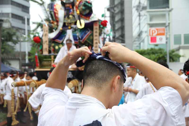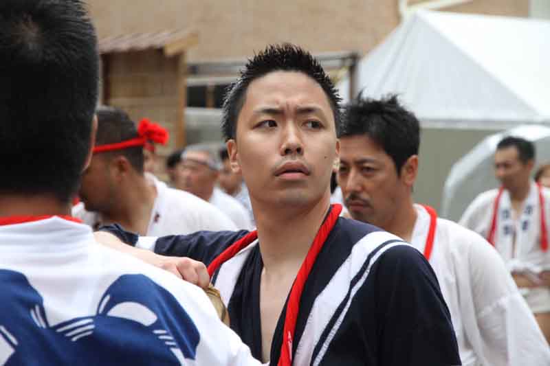 今年58年ぶりに下金屋町に建った恵比須流の山小屋前では、今年の流舁きを直前に、入念な打ち合わせが行われました。