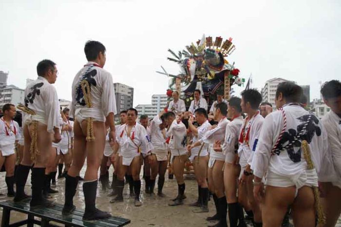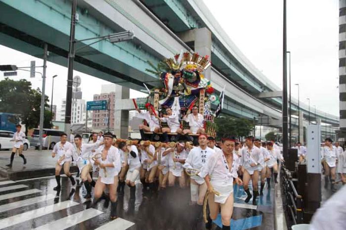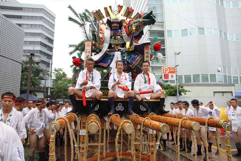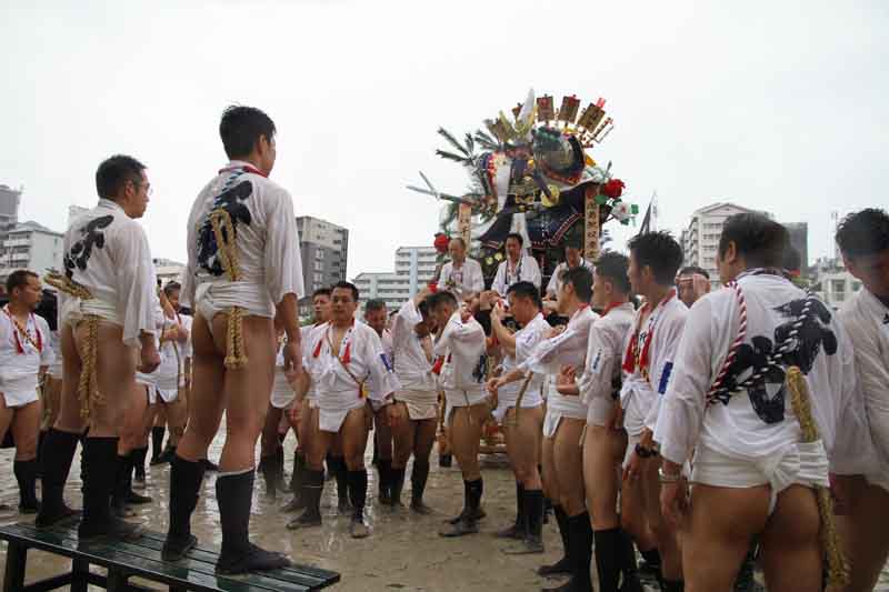 午後5時40分に流舁きは終了。行町の太鼓台の前で手一本が入れられ、無事流舁きが終了しました。