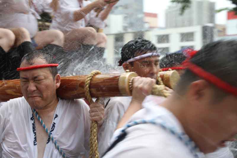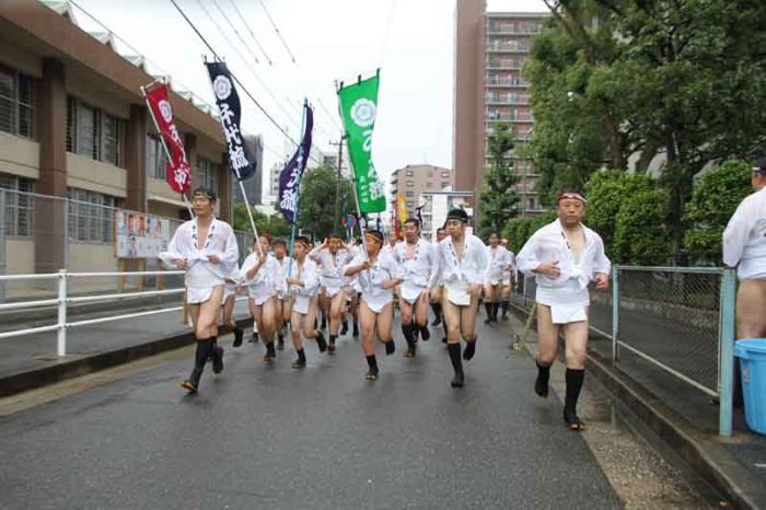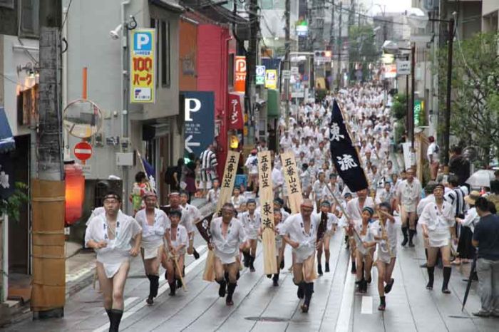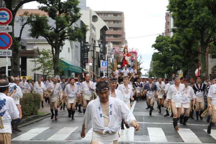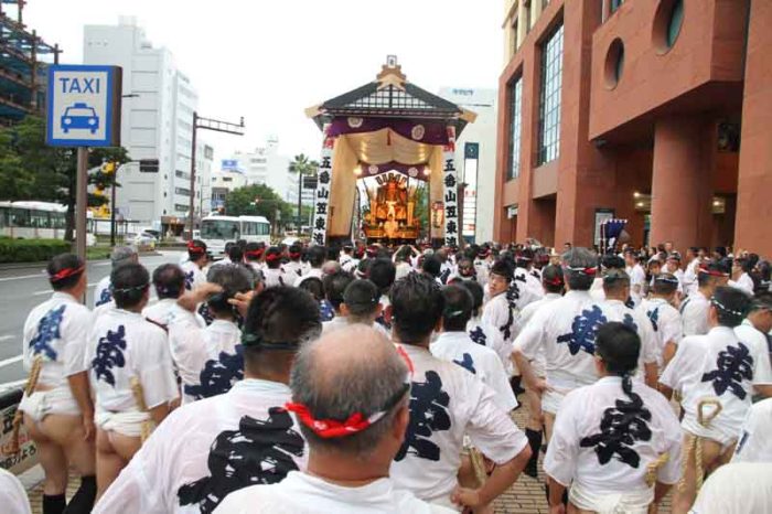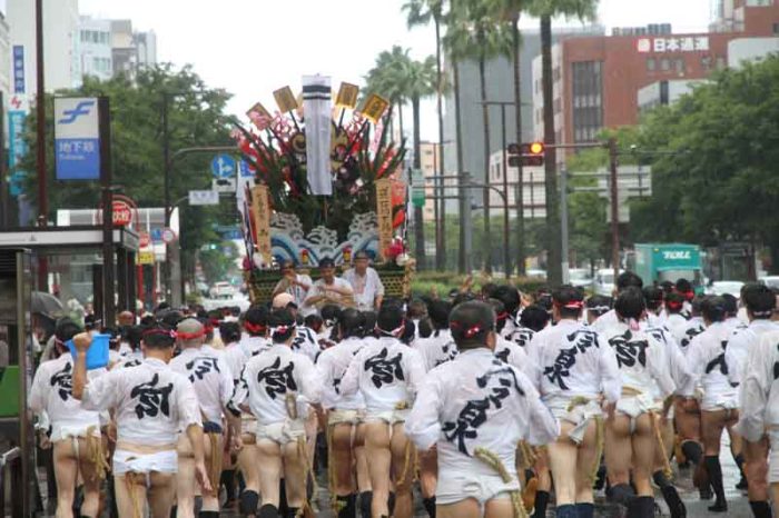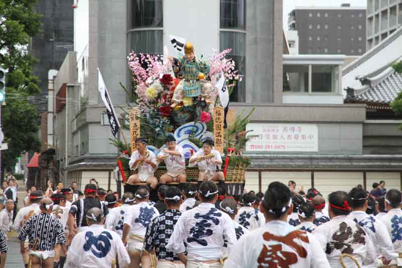 7月10日(水)。本日より舁き山が動きます。「静」の山笠から「動」の山笠へ。2019年の流舁きが本日行われました。流舁きとは自分の流の区域を、神を宿した山笠を隅々まで舁き回る行事です。
