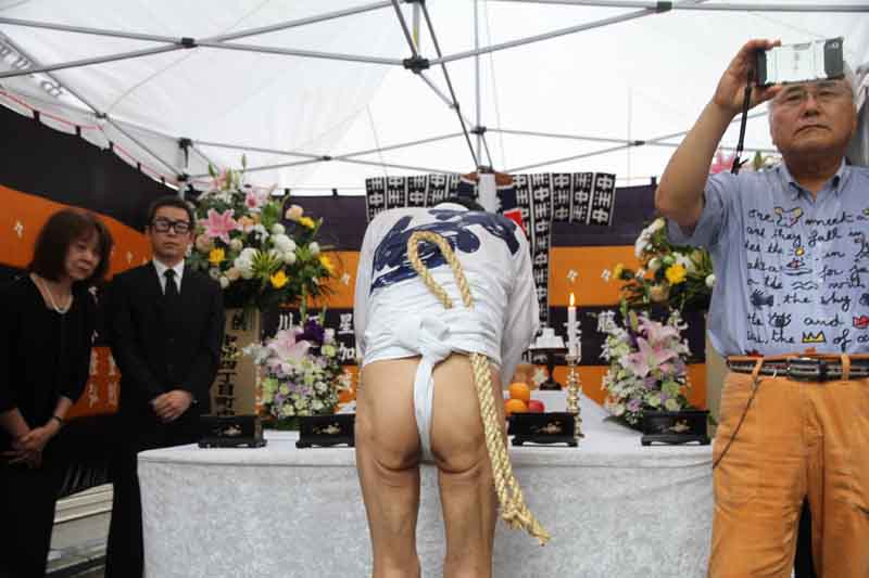途中、追善山が行われ、山笠を愛したそして中洲流を愛した故人を山笠の習わしに従って、祝いめでたと手一本で弔いました。