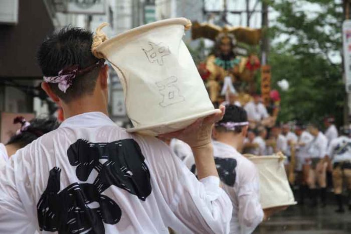 例年だと流舁きの日は晴れることが多かったのですが、今年は午後から雨が降り続くあいにくの天候コンディション。それでも、七つの流は今年初めての山舁きを行います。