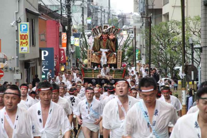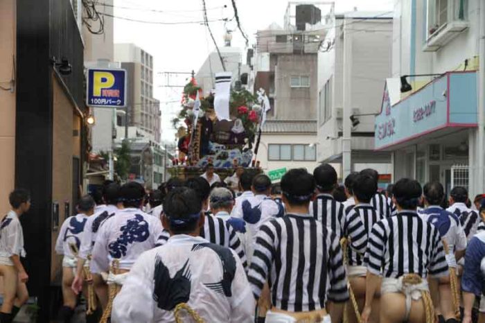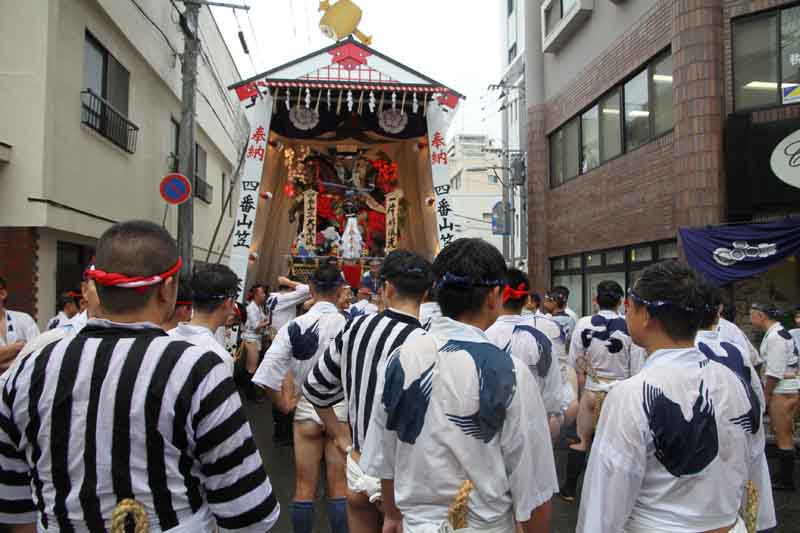 土居流は行町から土居通り、上川端商店街と舁き回った後、再び土居通りを通って濱小路、西方寺前町を舁き回ります。