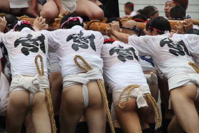 18時にスタートした東流は、舁き山いっぱいいっぱいの幅しかない狭い道を、「おっしょい」の掛け声でゆっくりゆっくり舁き山を進めます。