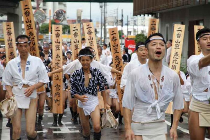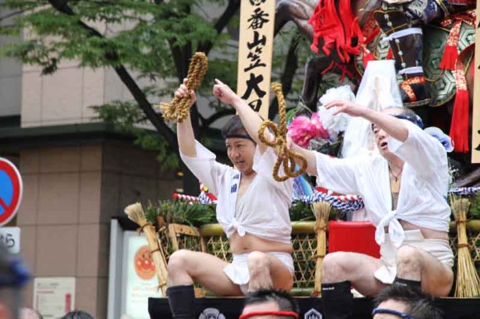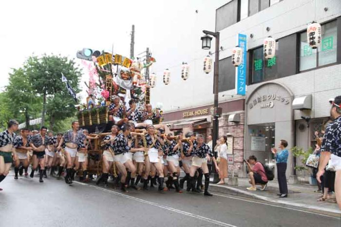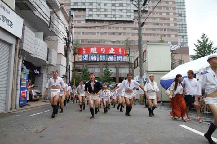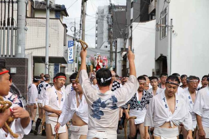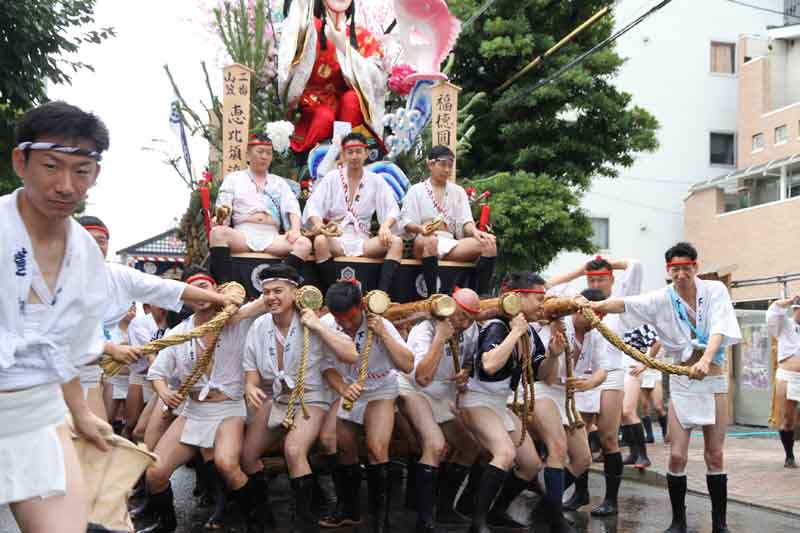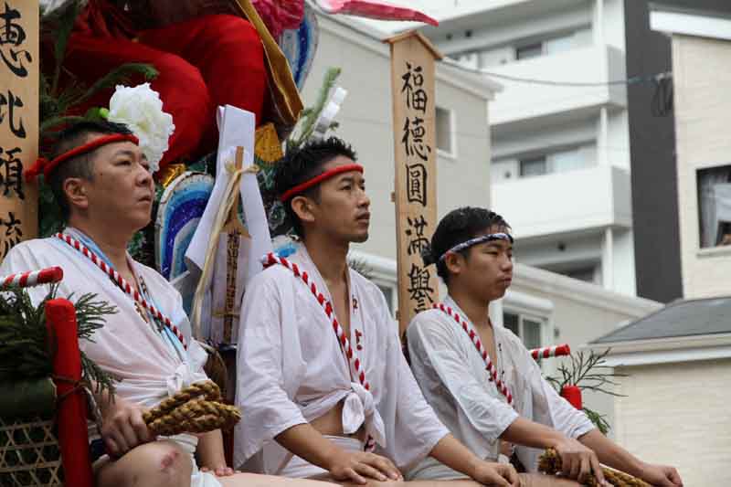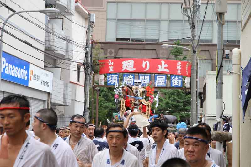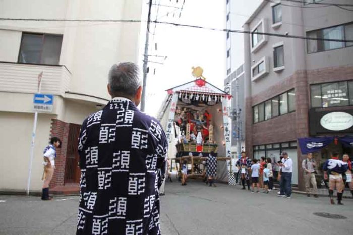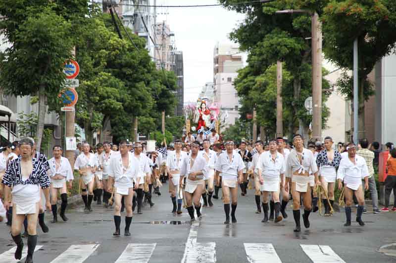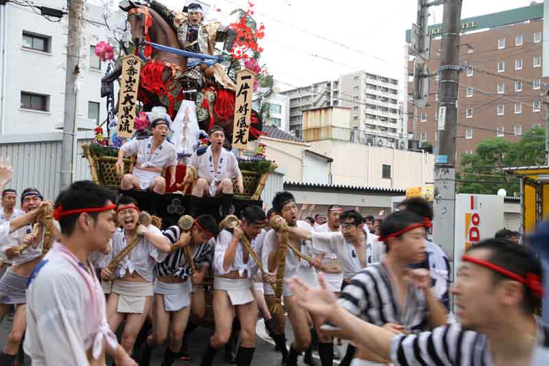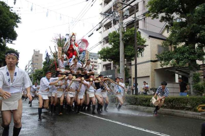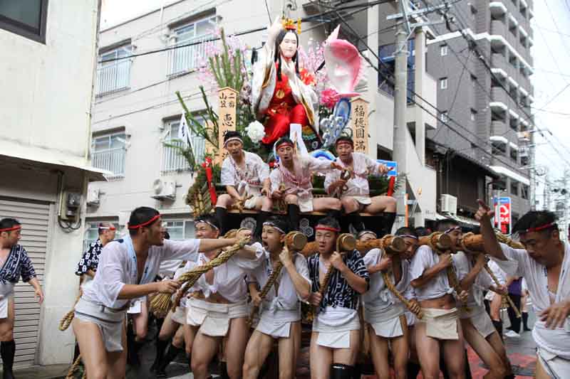 午後4時、恵比須流の舁き山が勢いよくスタート。大量の勢水を浴びて最後の流舁きに出発しました。