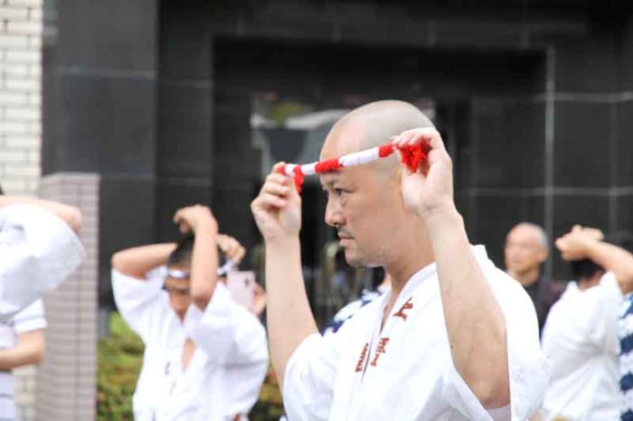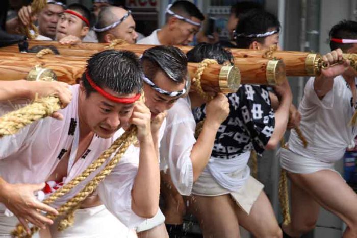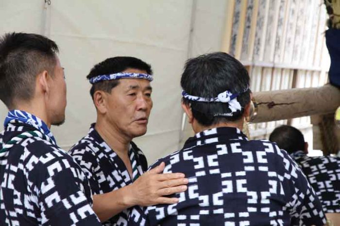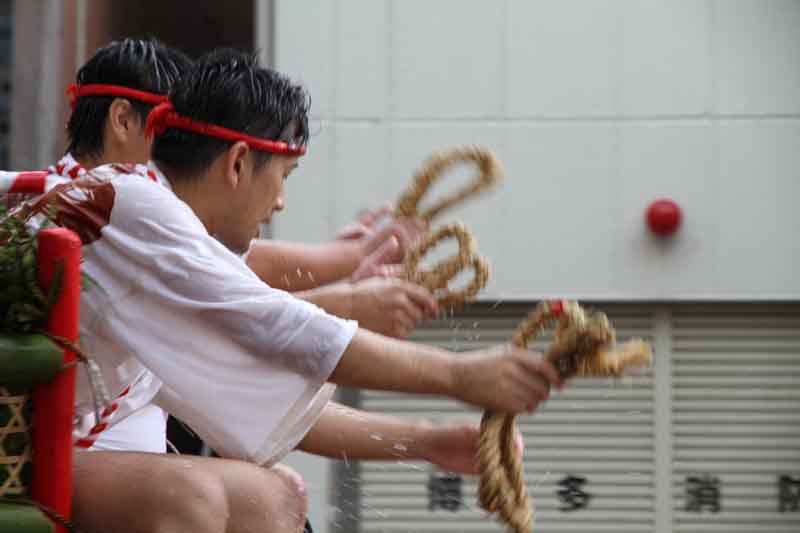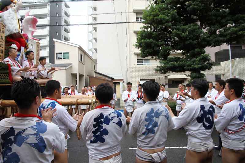 舁き出し1分前、恵比須流の手打ちが入り、棒組へ。いよいよ舁き出しの時です。