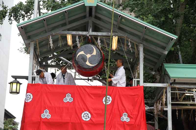 櫛田神社の太鼓台には大太鼓が設置されていました。