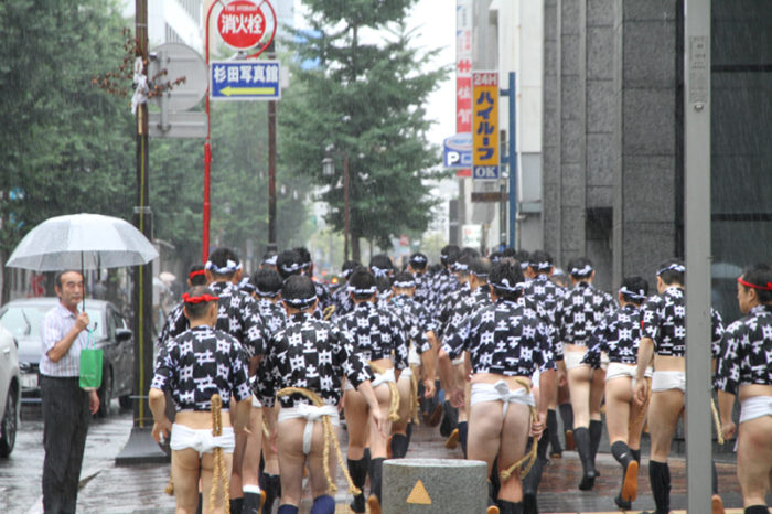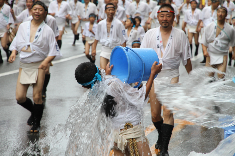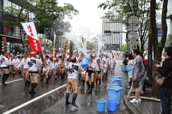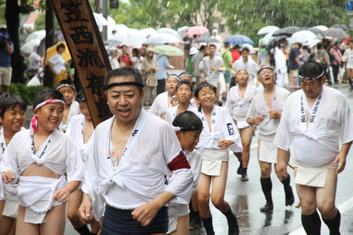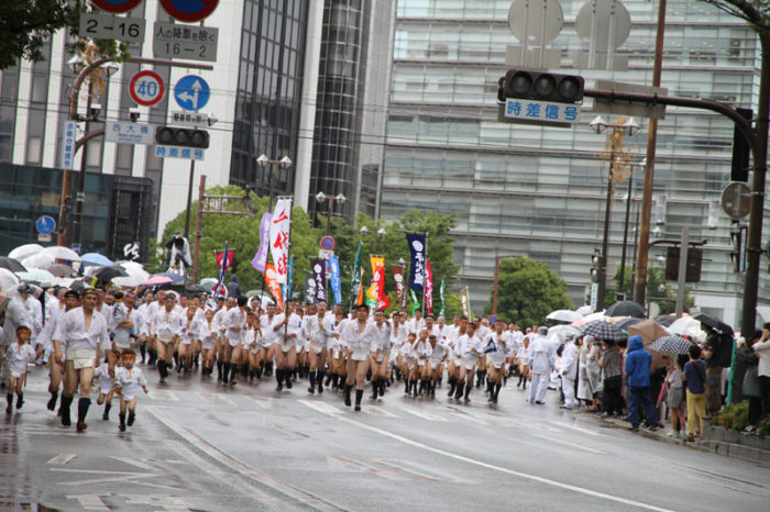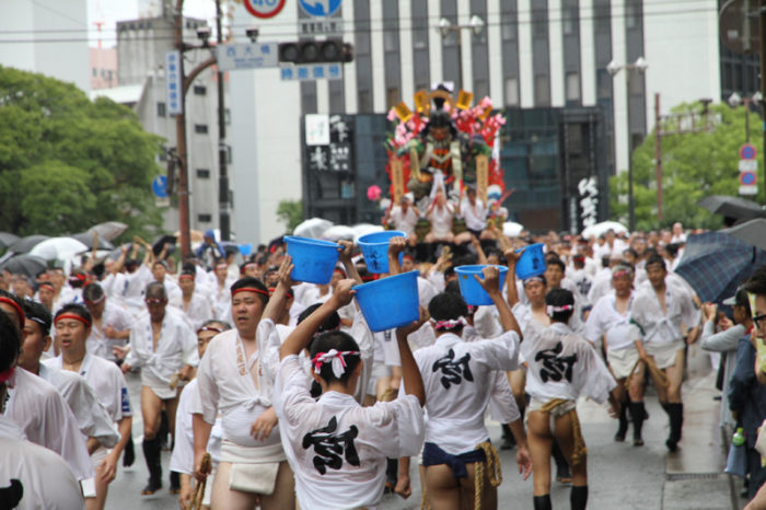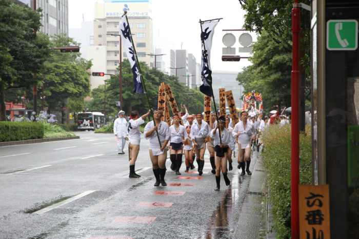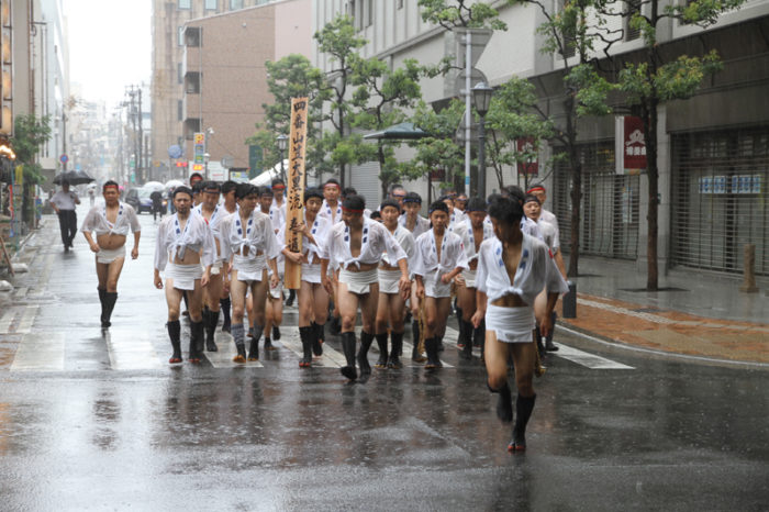 しかし、どんなに雨でも博多祇園山笠の行事は行われます。午後2時頃から、各流では出発の手打ちが行われ、雨の中山小屋まで走っていきます。