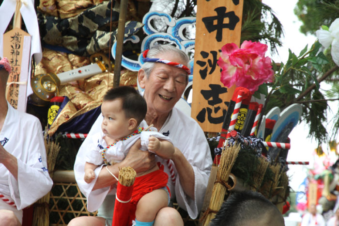 午後3時に舁き出し30分前の花火が内絵あげられました。次第に辺りは慌ただしくなり、道も交通規制が入りました。集団山見せの時間が近づいてきます。