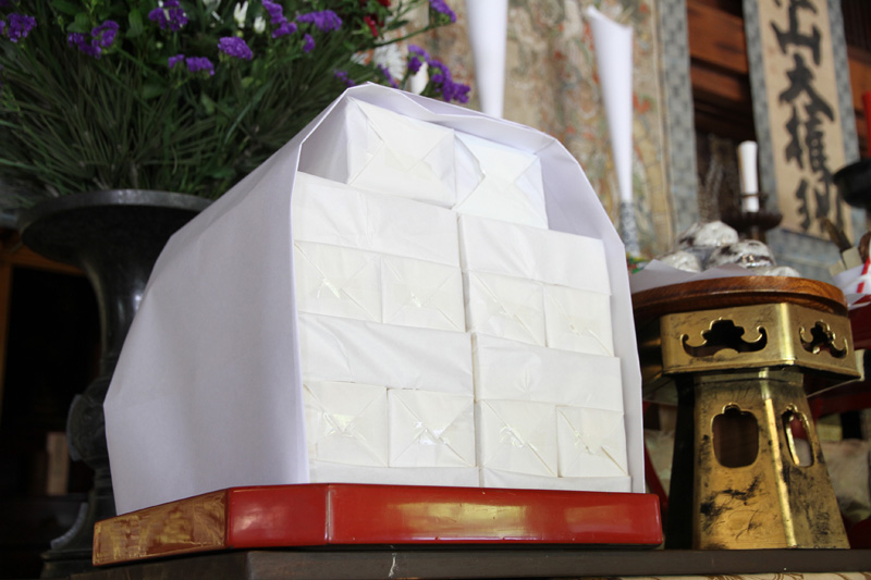 方丈には承天寺の開祖であり山笠の発祥となった聖一国師の絵と施餓鬼棚が。その御前で、まだ予断を許さない世界情勢のなか、大般若経が読み上げられていく光景は、聖一国師が水を撒きながら町を清めてまわり疫病退散を祈祷した鎌倉時代のその時と同じではないか、と想いを馳せてしまいます。