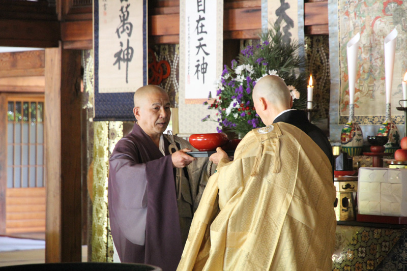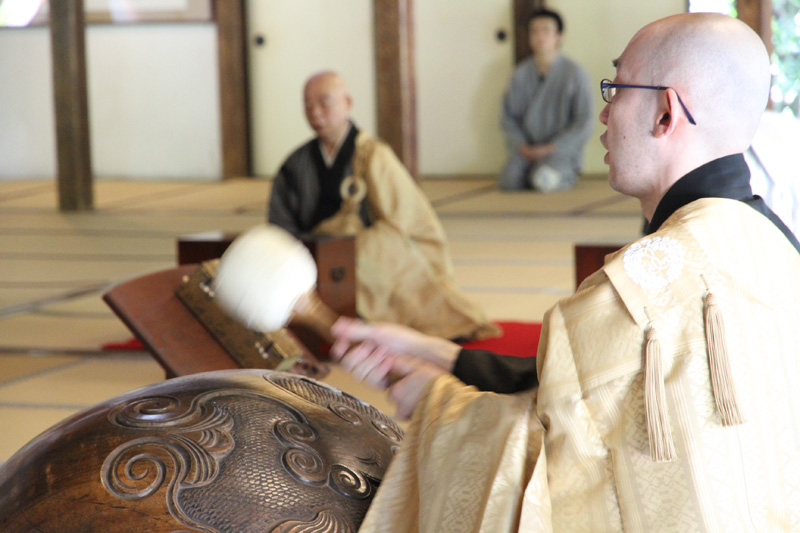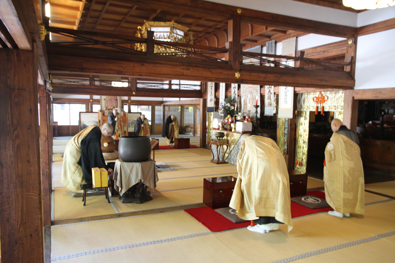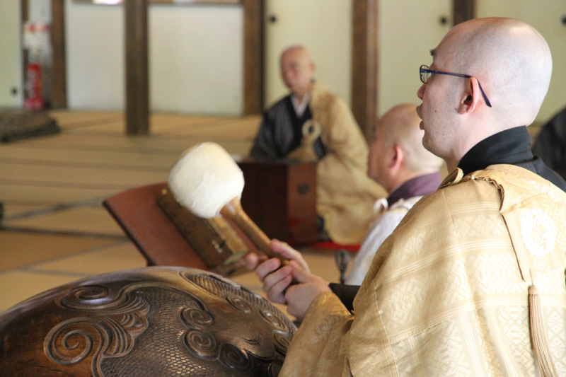 転読も終盤となり、神保住職が手元の鐘を鳴らすと、大きな木魚の音と共に住職よる読経が始まり、その読経が方丈に響き渡ります。