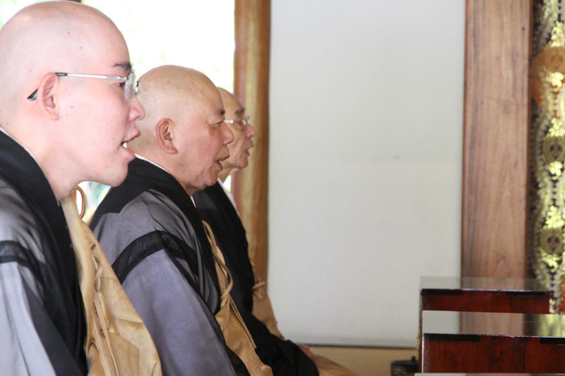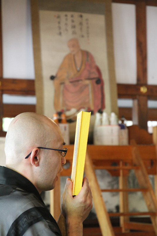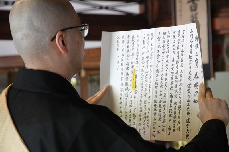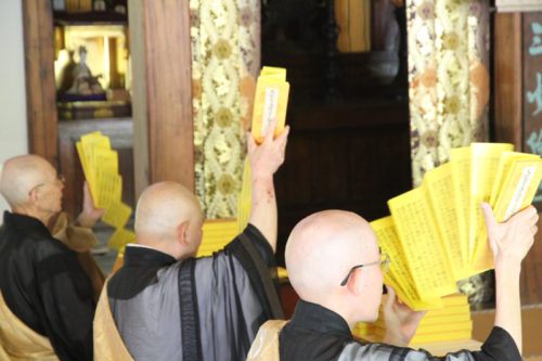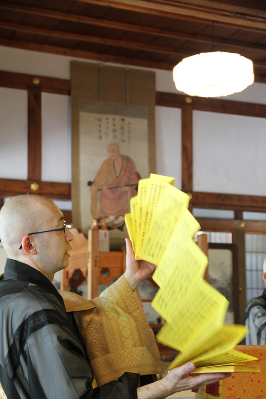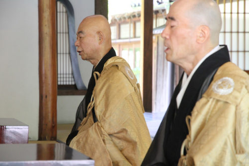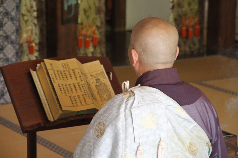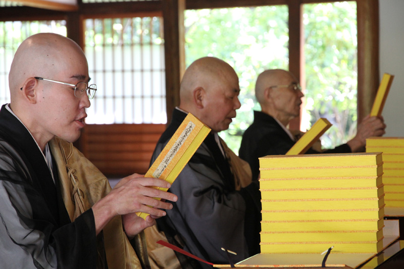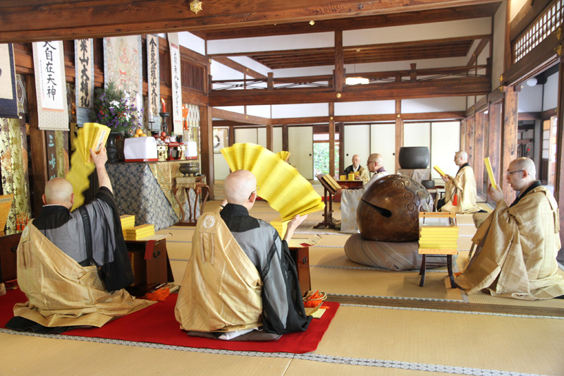 そして鐘と木魚が叩かれる中、厳かに全員の読経が始まります。
