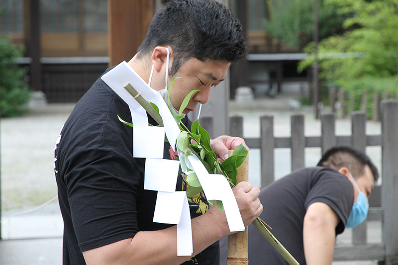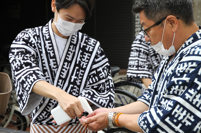神事前に参加者の手をアルコール消毒が行われ、対策は十分に行います。