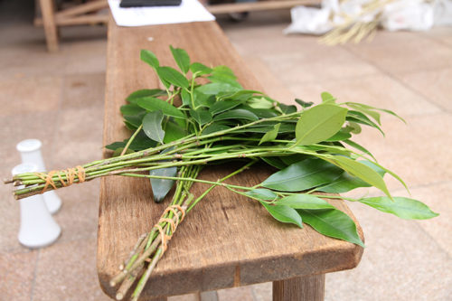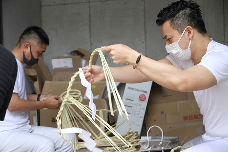 横町では、早朝から男たちが集まり、各家の玄関に掛けられる注連縄や辻々に飾る榊のが作られました。