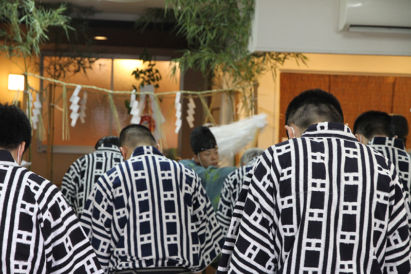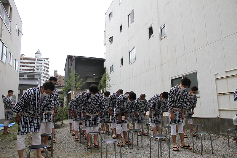 西流は人数を極力減らしたうえで、例年行っている祈願祭を櫛田神社の拝殿にて執り行いました。