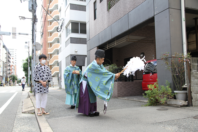 中竪町は午前八時半過ぎより、辻祈祷の神事を行いました。