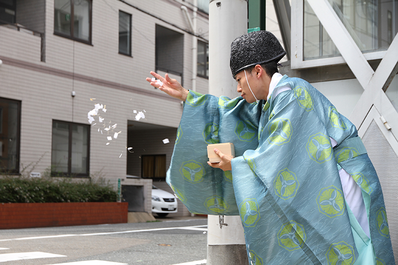 町の出入り口となる境界線に清め祓いを行い、町の神域化を行いました。