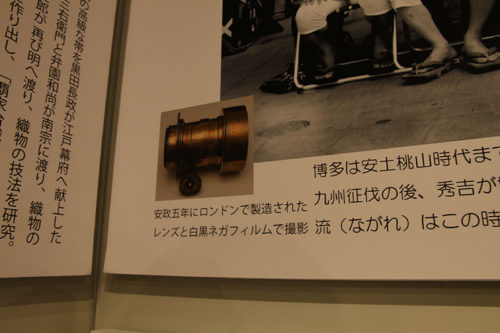 展示されている写真には、安政5年(1858年)にロンドンで製造されたレンズで撮影した博多祇園山笠の風景も。「江戸時代のレンズで撮影した平成の山笠の風景」という、まさに時空を超えた写真も展示してあります。